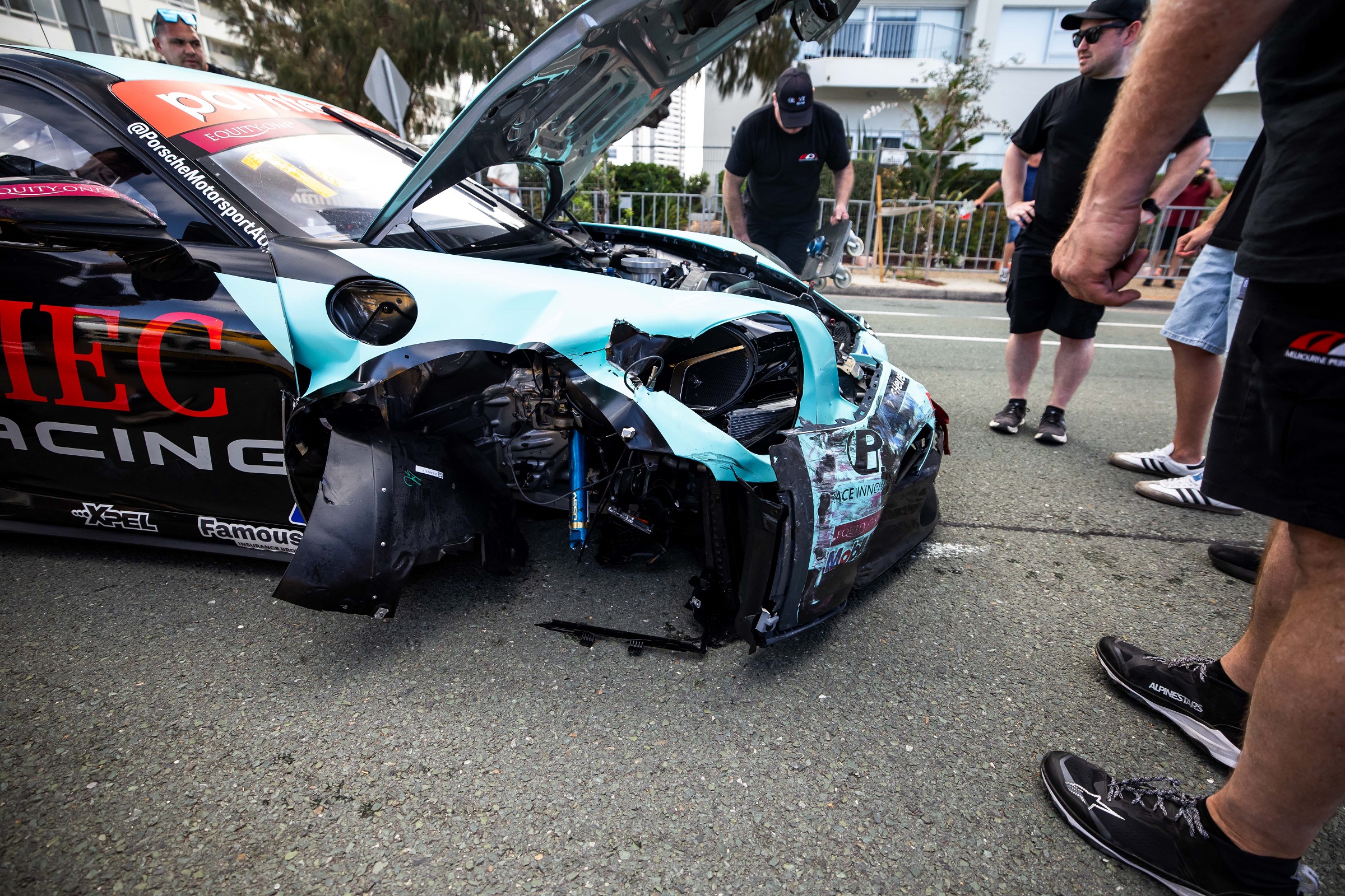 In a split second of car control, Hamish was the second car through the chaotic scene. He meticulously squeezed his 992 between the safety barrier and another Pors badly damaged, stationary car, narrowly avoiding terminal damage.